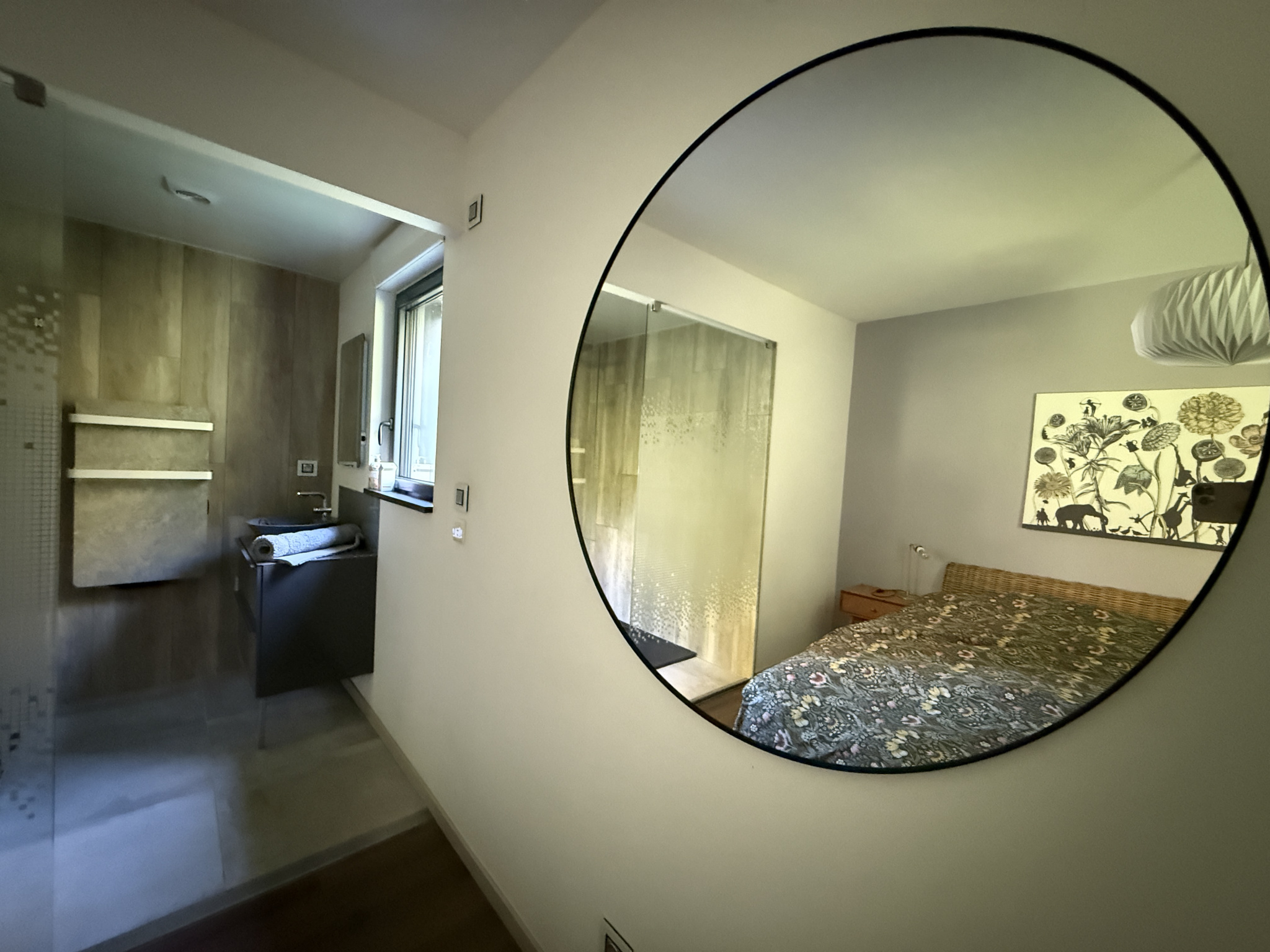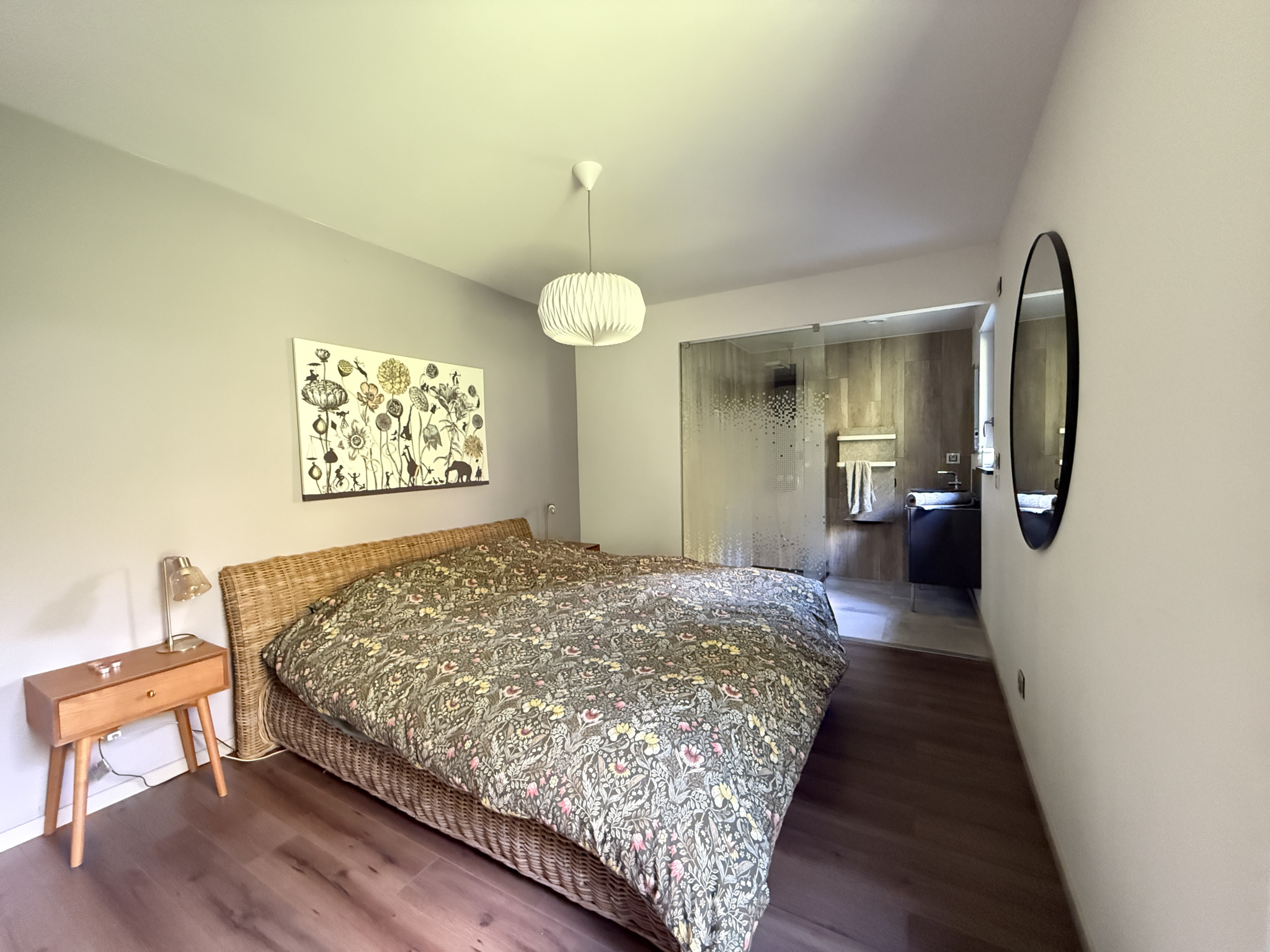 Toujours de plain pied, une chambre de presque 18 m2 avec sa salle d’eau