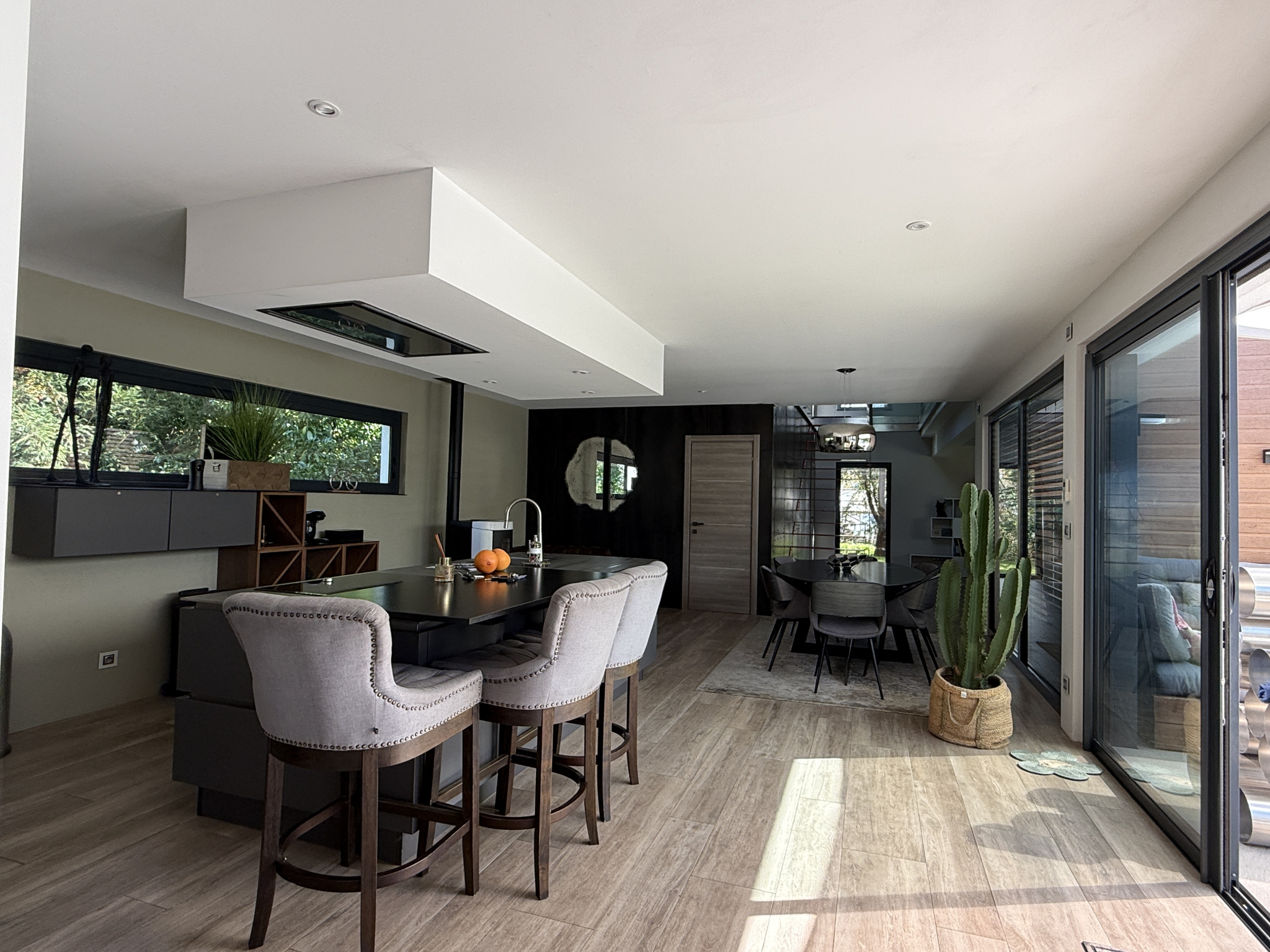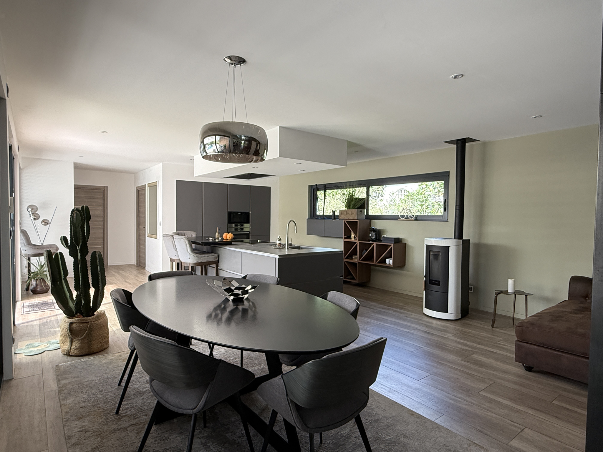 Construite en 2022, cette maison ossature bois offre de vastes volumes ouverts sur l’extérieur avec ses 168 m2 habitables, sa terrasse de 154 m2 avec piscine Inox à débordement et son terrain clôturé et paysagé de 10,38 ares sans vis à vis en impasse.
