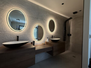 Le confort de la maison est assuré par un poêle à pellets, ballon thermodynamique, des BSO, des menuiseries en aluminium haut de gamme Paralu Lyon sans seuils, un escalier en acier design et un plancher de verre, un réseau Starlink, un portail automatisé avec digicode et caméra et bien d’autres prestations haut-de-gamme associées à des finitions de qualité