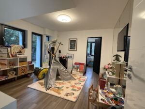 À l’intérieur : une très belle cuisine ouverte sur un espace à vivre très agréable et lumineux avec une cheminée à double foyer, chauffage au sol pour un confort optimal, une salle de sport ou salle de jeu, une buanderie, une chambre d’amis équipée d’une salle de bain avec douche.