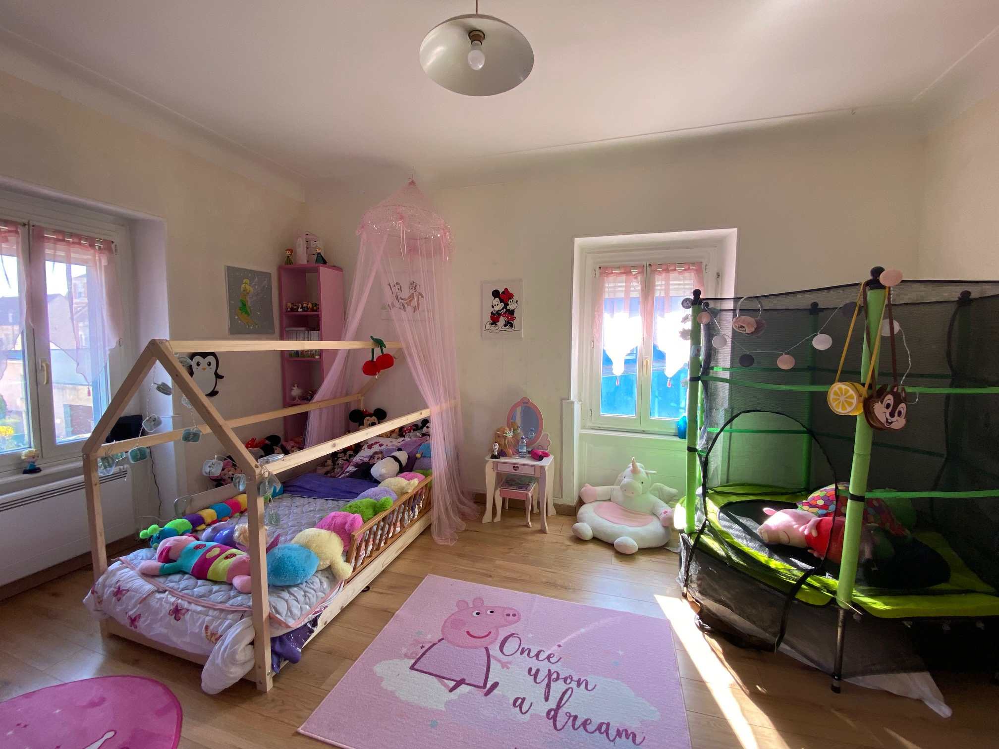 L’espace intérieur est composé d’une entrée, d’une cuisine équipée ouverte sur un beau séjour lumineux, d’un toilette indépendant, d’une salle de bain avec baignoire, d’un espace nuit comprenant 2 chambres dont une sous comble.