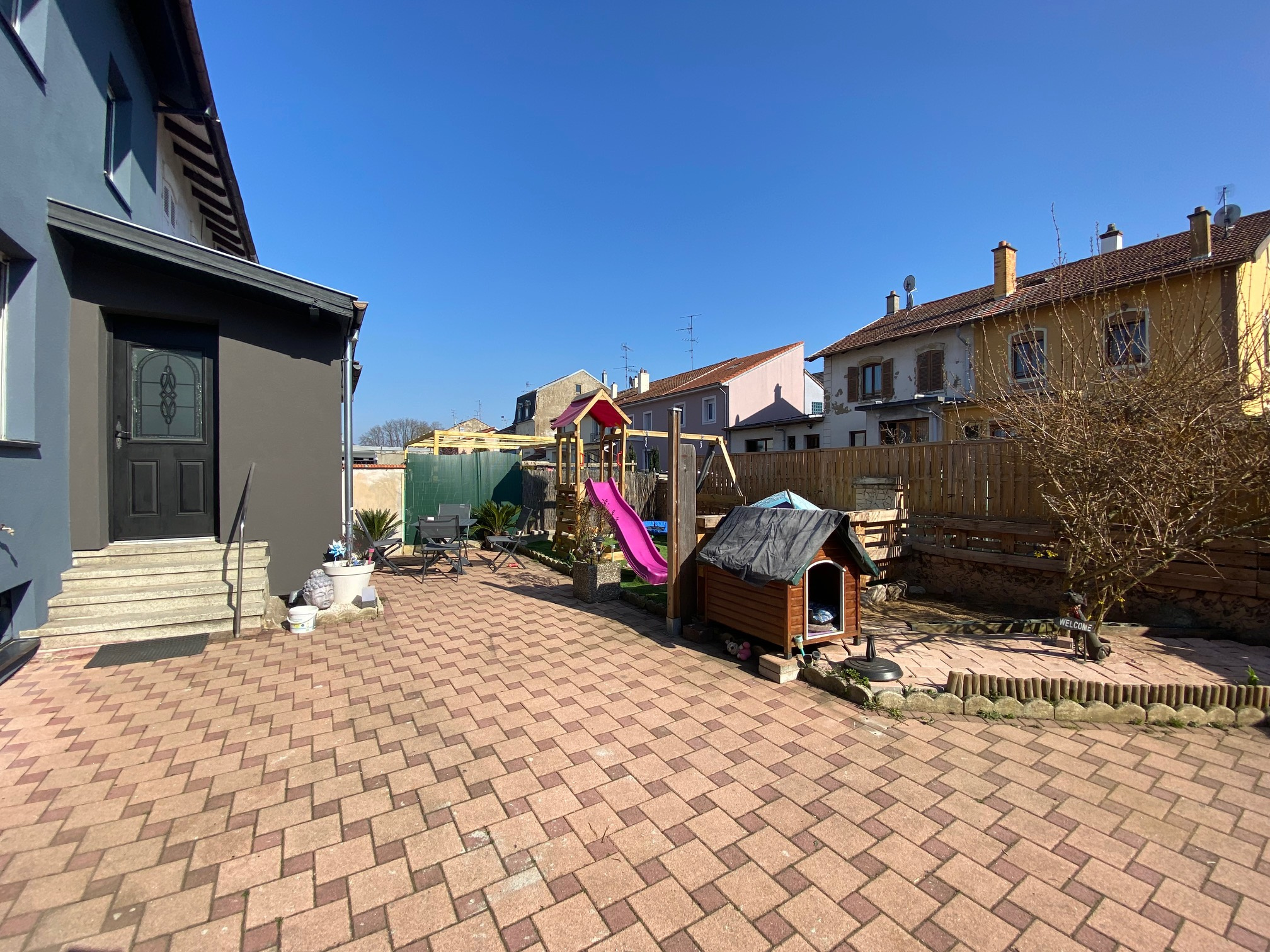 Dans la commune de Mulhouse au calme dans petite rue, maison accolée de 3 pièces d’une superficie de 70m2 plus 12 m2 de dépendance aménagée, une grande terrasse agréable et ensoleillée à l’abri des regards avec un beau terrain bien exposé de 1,66 ares