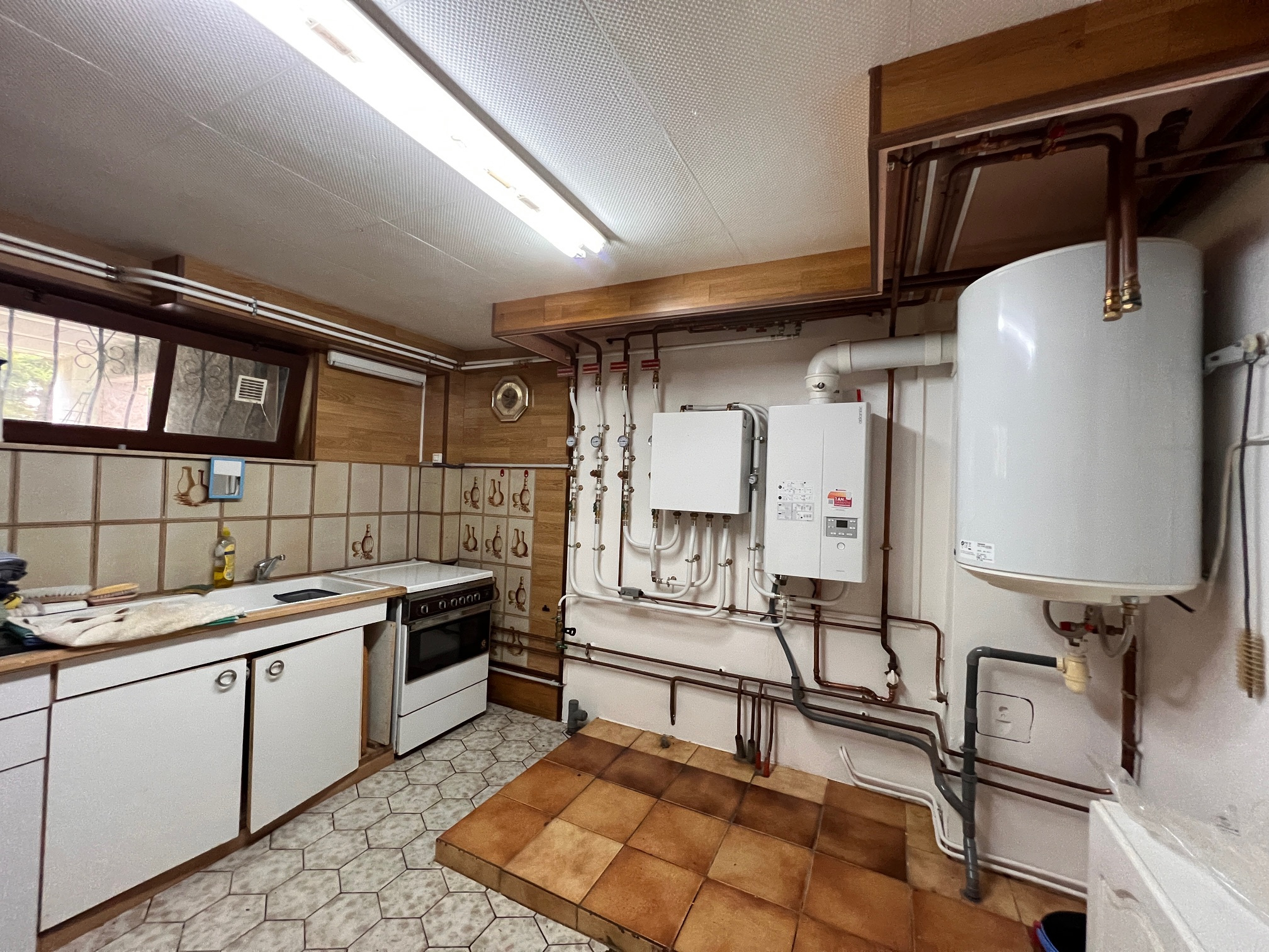 Au sous-sol : un garage pour 2 voitures avec porte automatique, un wc, un atelier, une grande pièce aménagée et chauffée, une chambre ou un bureau, de nombreux placards de rangements, une buanderie, une chaufferie, un pièce annexe pouvant servir de cellier