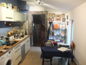 Cuisine centrale équipée ouverte, liant harmonieusement ancien et moderne