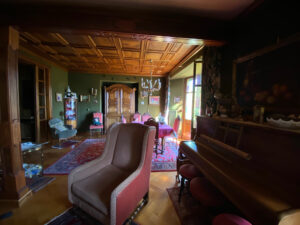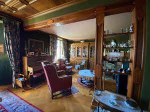 L’intérieur est constitué d’un espace nuit comprenant 2 chambres, une salle de bain avec baignoire et douche, un spacieux salon de 34m2 avec cheminée, parquet massif, un espace cuisine indépendant, un vaste dégagement avec plusieurs placards intégrés