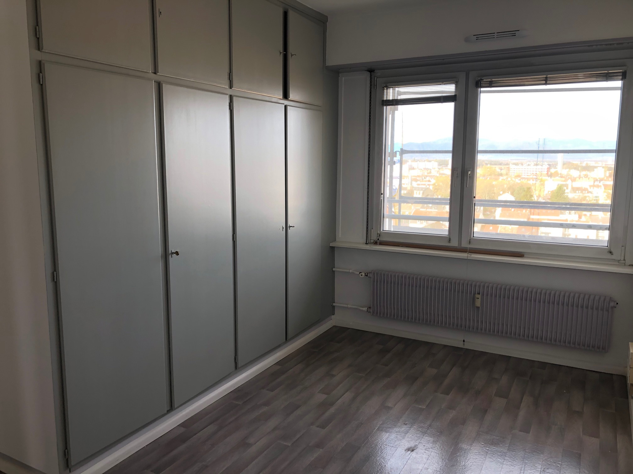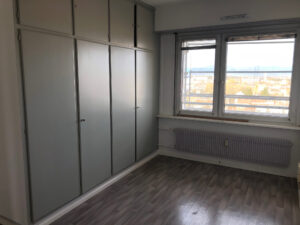 MULHOUSE : Spacieux et lumineux 4 pièces de 102 m2 situé au 12ème étage d’une copropriété de standing au centre de Mulhouse. Il se compose d’une grande entrée, d’un vaste séjour exposé sud/est, d’une cuisine avec vue, de trois belles chambres dont une avec placard mural, une salle de bain avec baignoire, un toilette séparé, un grand balcon avec vue, au sous-sol une cave et une place de parking privé, copropriété en cours de rénovation concernant l’isolation, le ravalement des façades, des balcons ainsi que le changement de la chaudière collective.