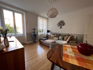 Il se compose d’un séjour, d’une cuisine équipée séparée, de 3 belles chambres, une salle de bain avec douche et baignoire, un wc séparé, sur le palier le coin buanderie, et une cave au sous-sol,