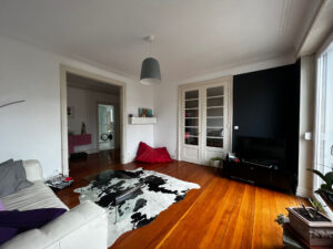 il se compose d’une agréable entrée très vaste desservant un double séjour de 38m2 avec petit balconnet , une cuisine avec placards muraux d’origine avec un accès sur une grand balcon avec vue dégagée, d’une grande chambre de 13m2, une 2ème chambre de 11m2, une salle de bain neuve avec matériaux de qualité, un wc séparé,
