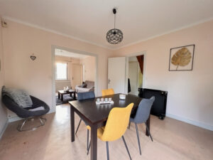 Mulhouse dans le quartier du Rebberg de Dornach, venez découvrir cette belle maison des années 60, comprenant 4 pièces d’une superficie de 90 m2, avec un beau terrain clos et arboré de 2,84 ares, elle se compose au RDC d’une entrée, d’une cuisine équipée, d’un double séjour, d’un wc séparé et à l’étage 2 grandes chambres avec placards intégrés, d’une salle de bain avec baignoire et 2ème toilette