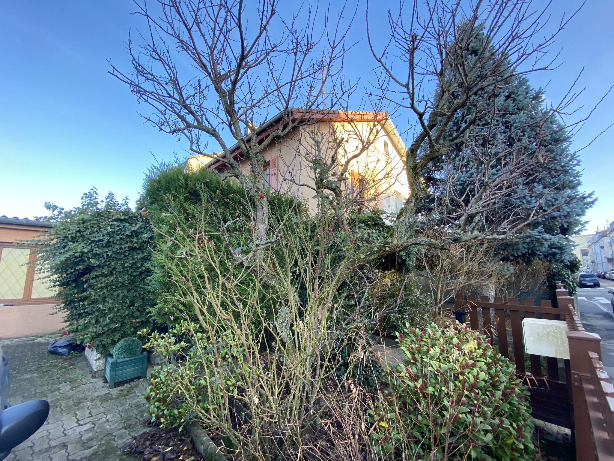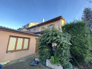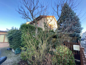 A l’extérieur : un grand garage une voiture et 2 places de parking intérieur, une cour et un jardin clos et arboré d’environ 2 ares complète ce bien.
