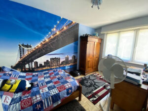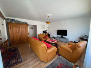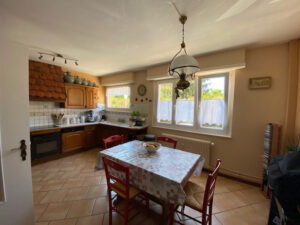 un grand espace à vivre de 38 m2 avec accès à un extérieur, une grande cuisine de 18m2 équipée, deux chambres possibilité d’une 3ème, une salle de bain, un wc séparé,