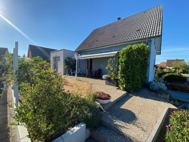 Très agréable maison individuelle de 1995 située dans la commune de Sausheim dans quartier calme et résidentiel, d’une superficie de 118,88 m2 habitables sur un terrain d’environ 5 ares