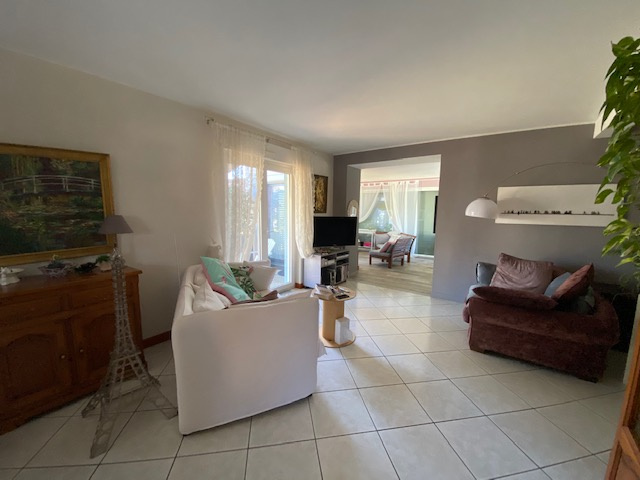 Au RDC : d’une entrée, d’un vaste séjour d’une surface de 64 m2 avec baies vitrées donnant accès à une agréable terrasse expo SUD/OUEST avec store extérieur, d’une cuisine équipée ouverte, d’une véranda récente, d’un bureau qui peut facilement se tranformer en 4ème chambre, d’une salle d’eau avec douche à l’italienne et toilette.