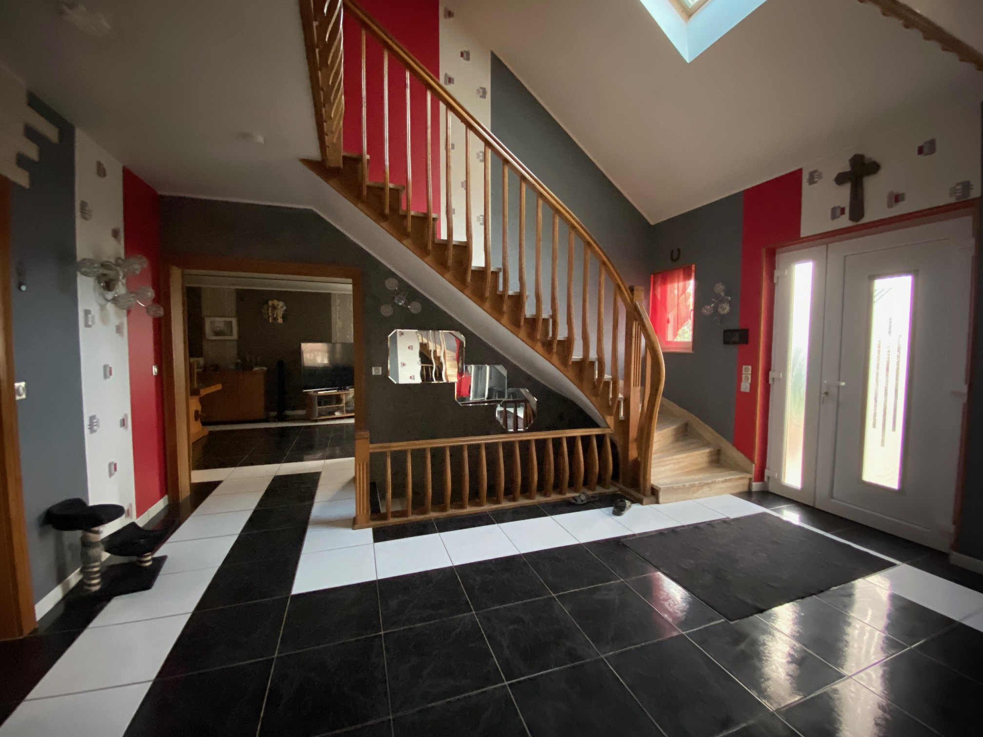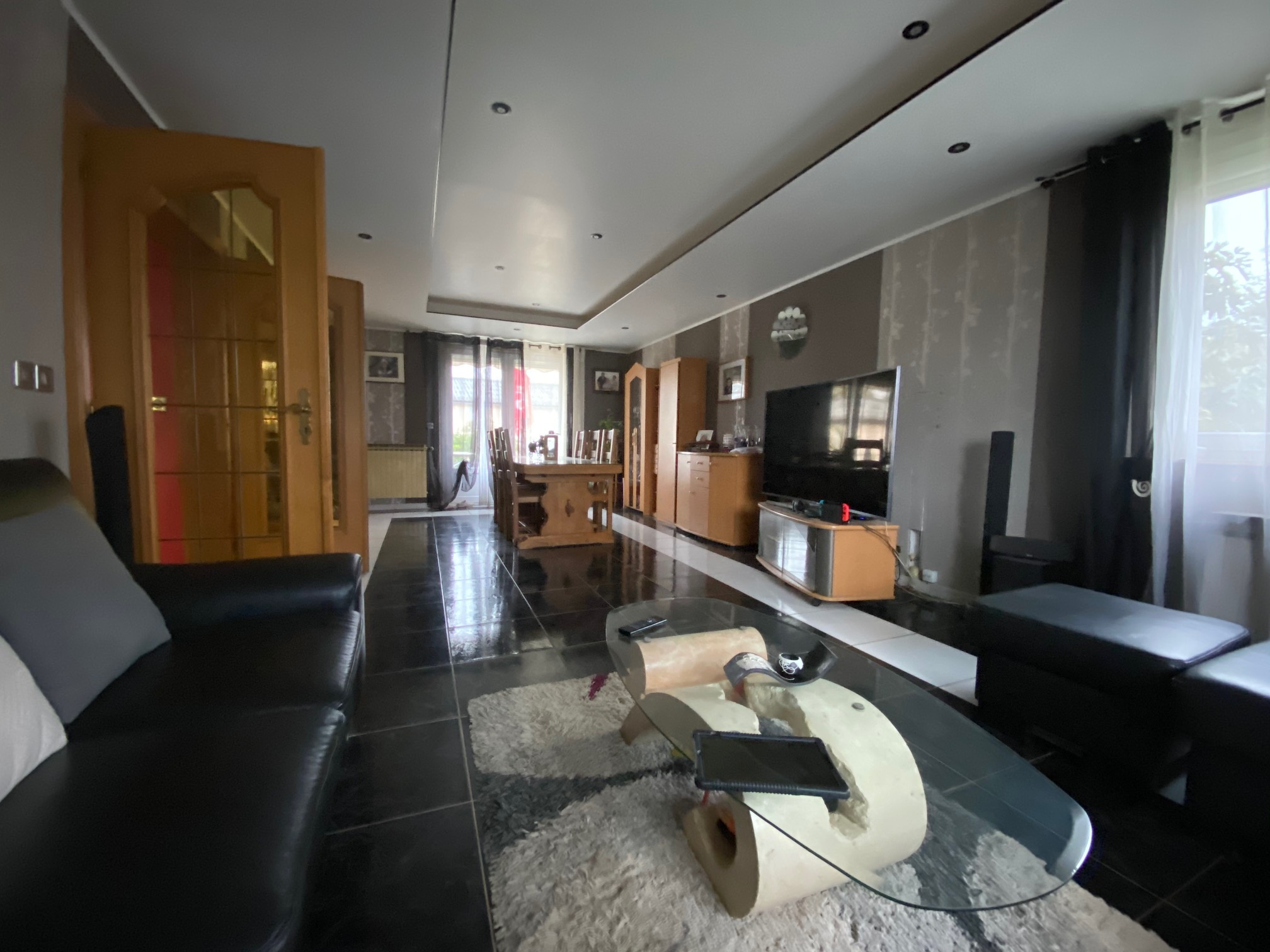RDC : spacieuse entrée avec cheminée de 22 m2, un double salon séjour de plus de 36 m2 avec accès direct à la terrasse, cuisine équipée ouverte sur le séjour, 2 chambres, salle de bain avec toilette