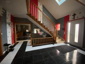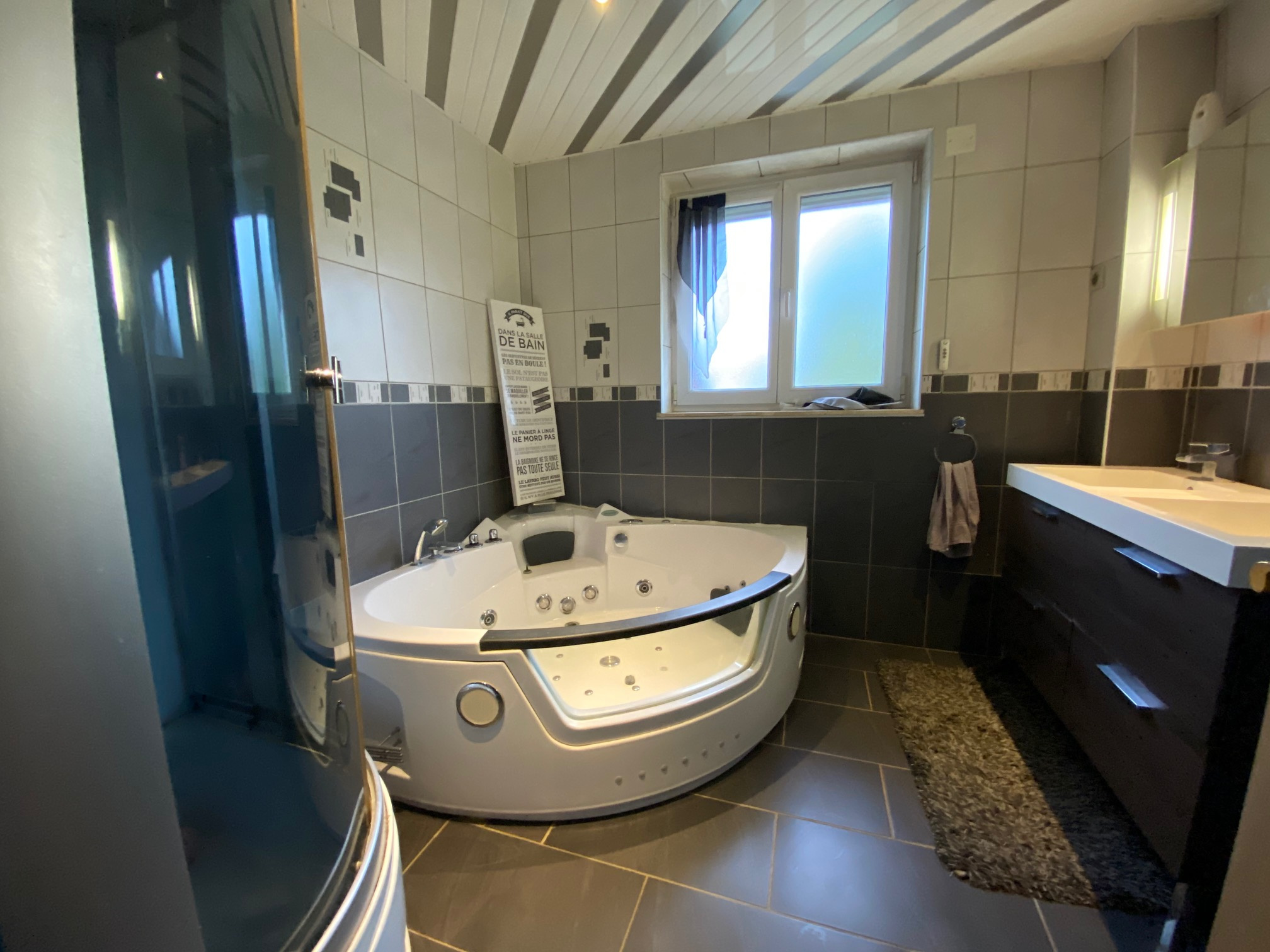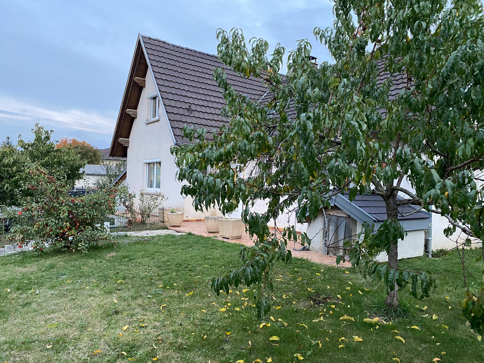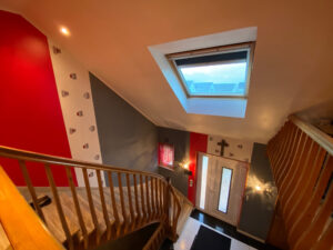 Chauffage au gaz chaudière 6 ans, radiateurs neufs, double vitrage en PVC 11 ans, volets motorisés, comble isolé 2×100 (laine de verre)