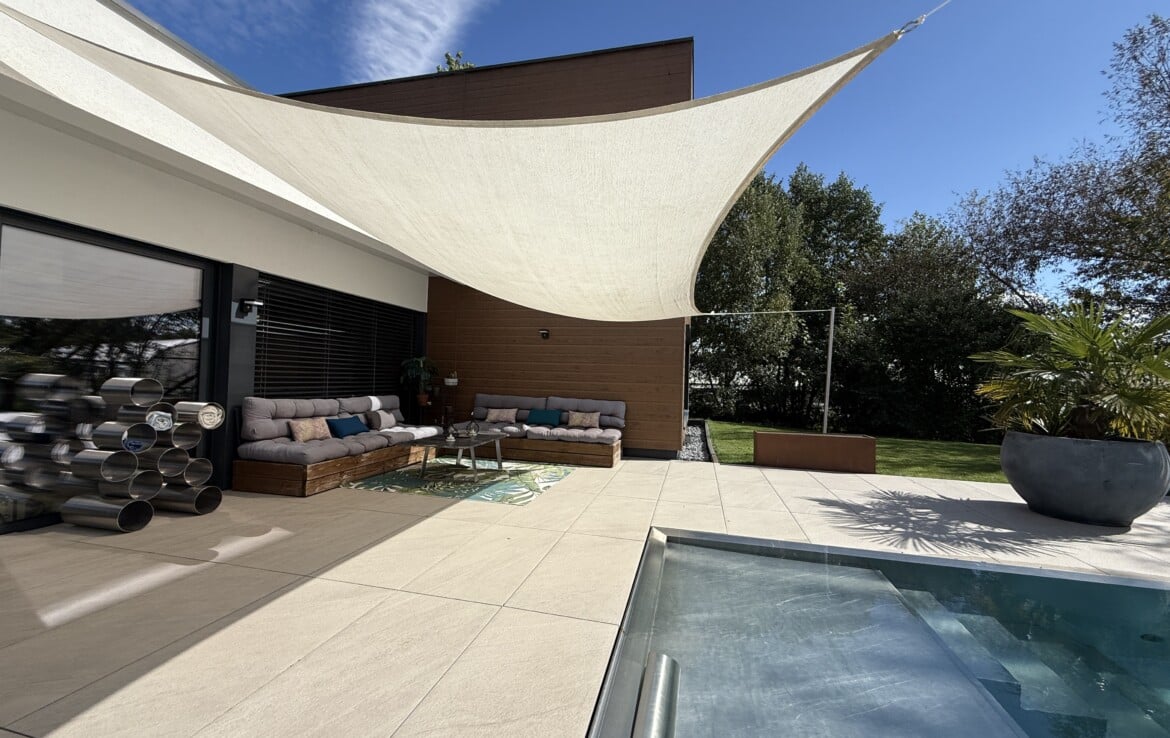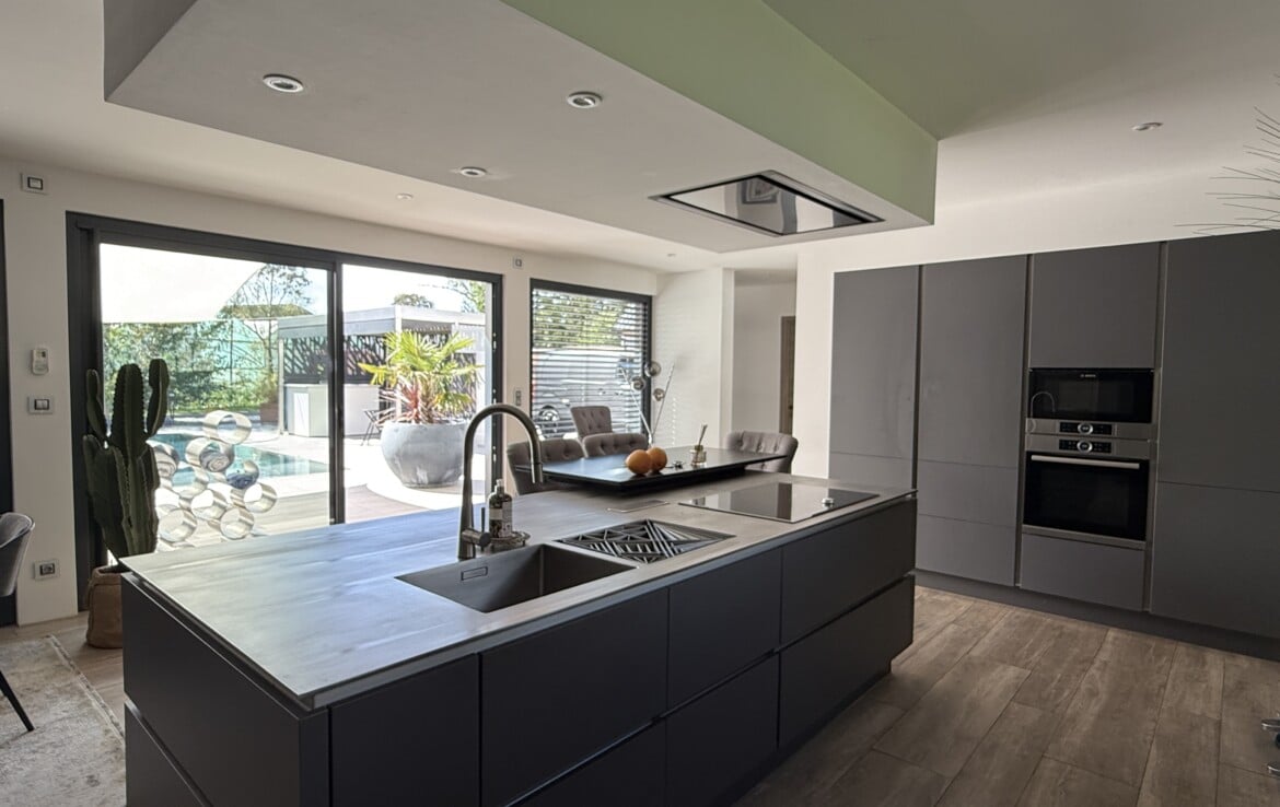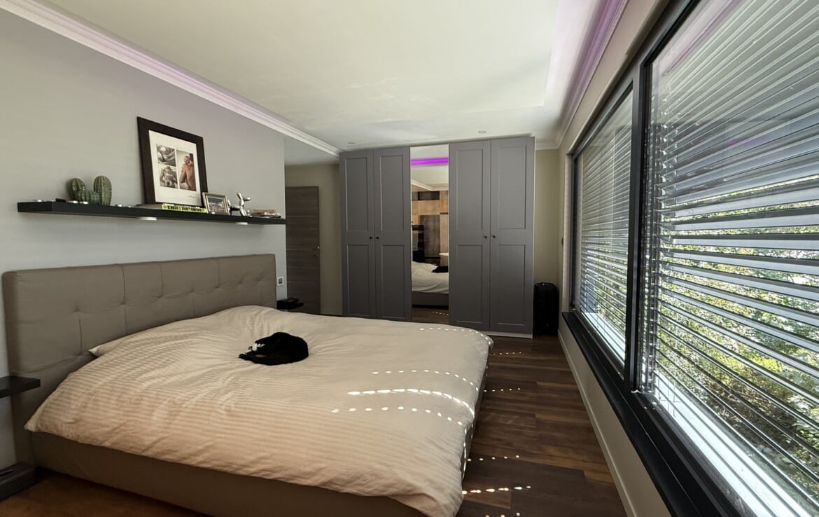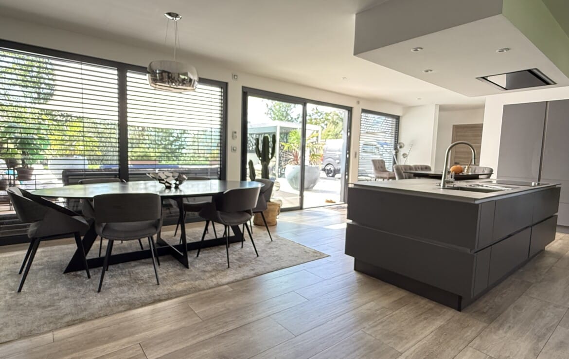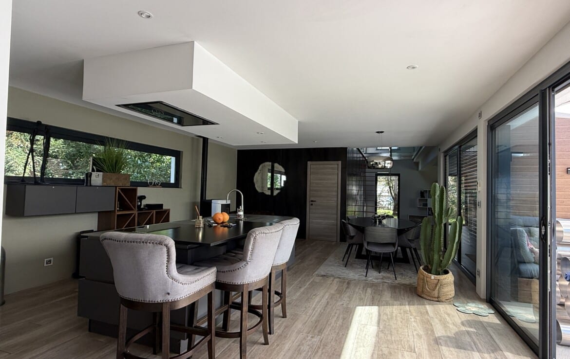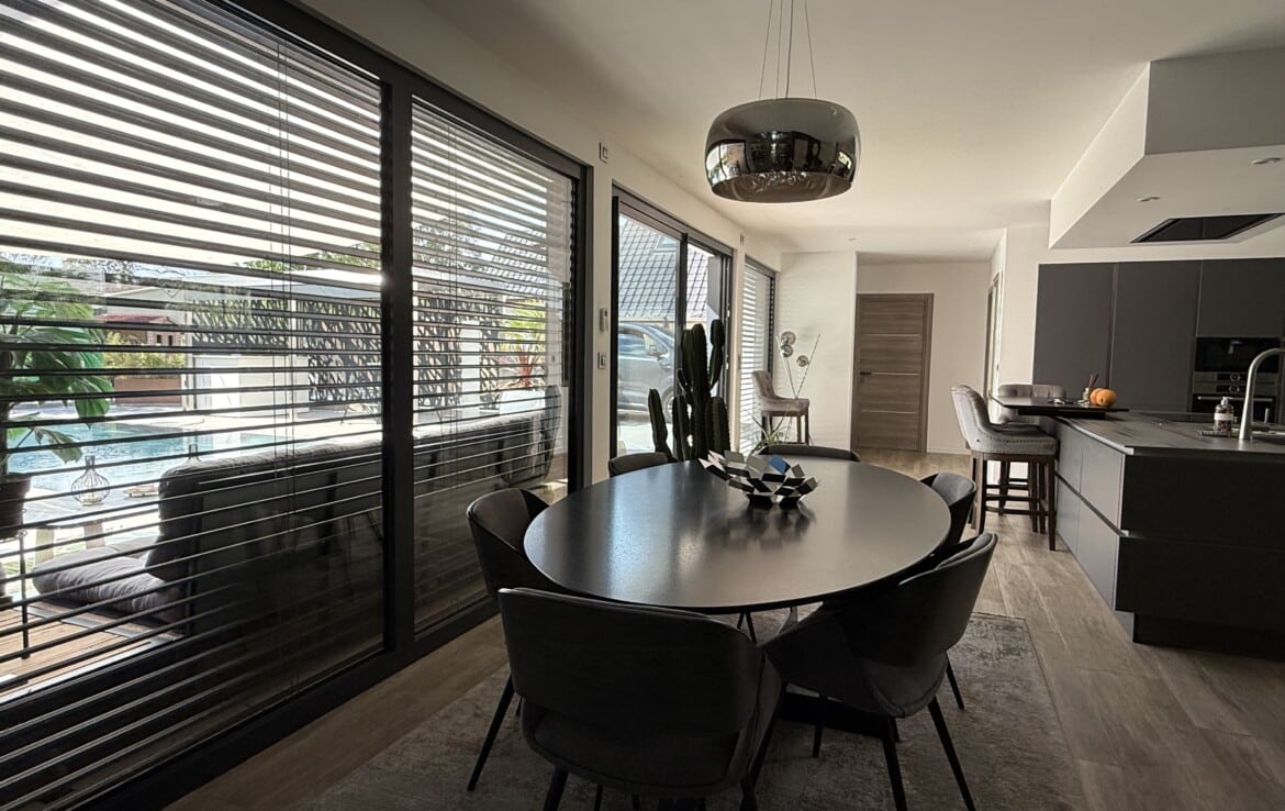 D’immenses baies vitrées avec BSO réglables laissant rentrer la lumière et permettent de prolonger les espaces sur l’extérieur.