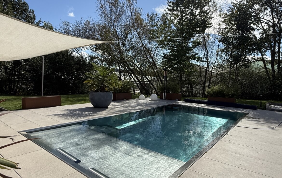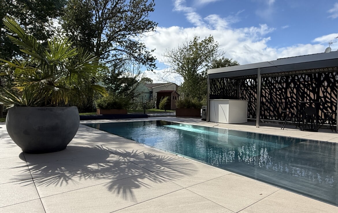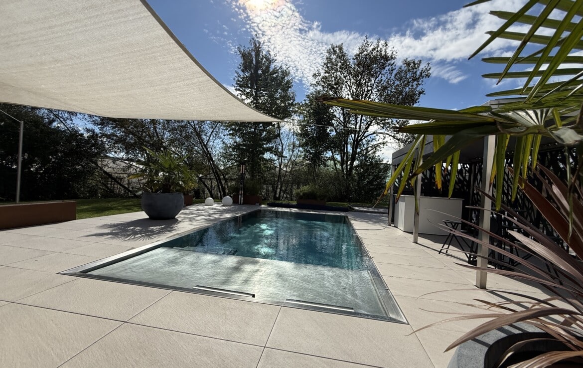 La conception moderne de ce bien se retrouve également dans le jardin paysagé, agrémenté d’une piscine miroir à débordement de 8×4m en INOX avec un escalier immergé et une plage de 1m50/4m, sécurisée et chauffée, une pergola inoxydable avec bar ainsi qu’une belle allée de 60m éclairée et pavée avec la possibilité de plusieurs stationnements.